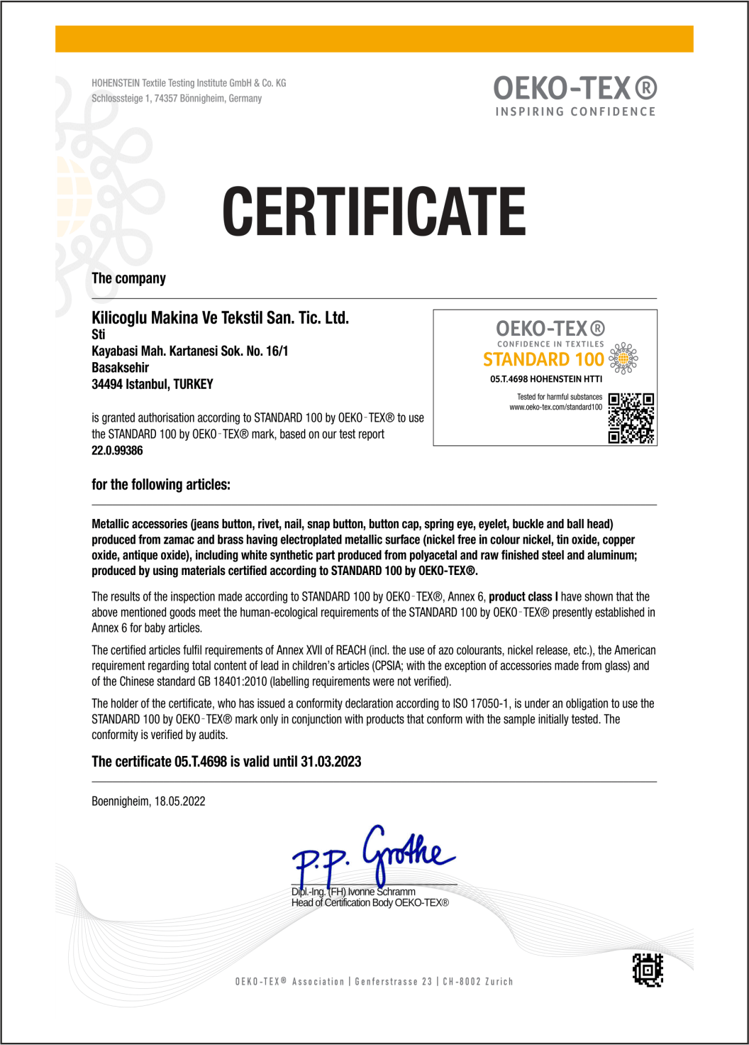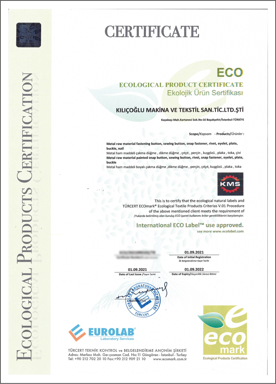 Ecolabel Certificate